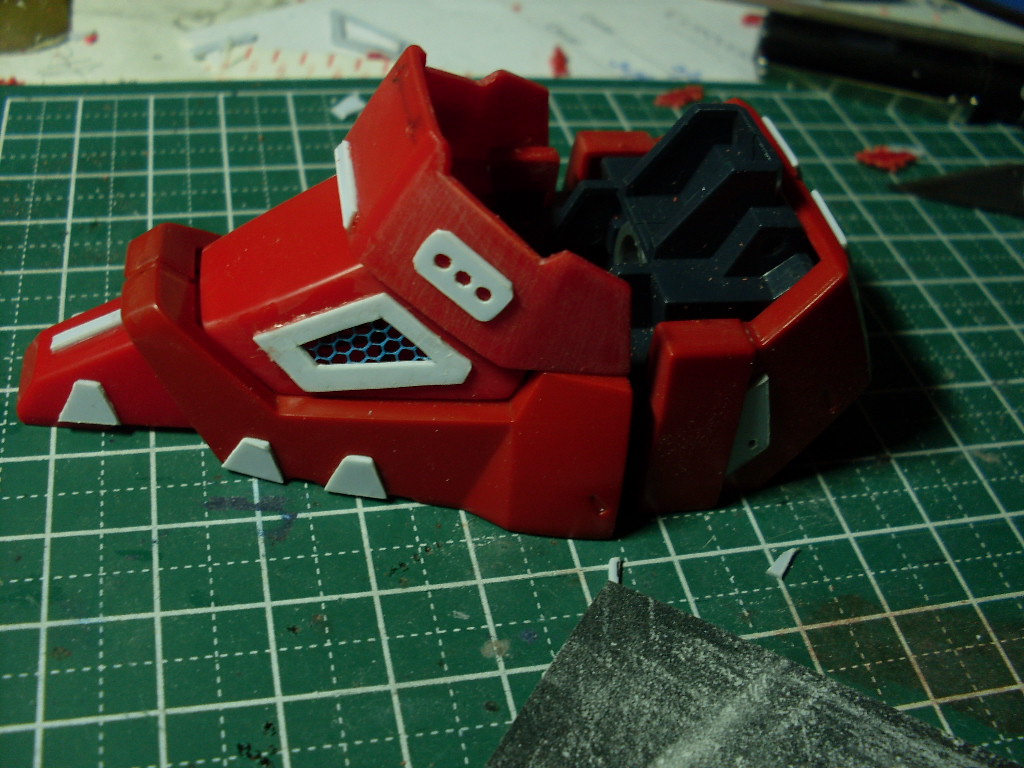 After cutting all the pieces, added some more pla-plates, trim the armor of the ankle guard and placing tamiya wire mesh underneath here is what it looks like now.